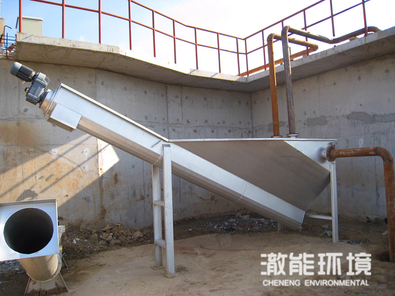 The CGS spiral sand-water separator is a supporting equipment for the grit removal system of the grit tank, and its function is to separate the sand-water mixture discharged from the grit tank. Scope of application It is used to separate the sand and water mixture from the grit tank in the urban sewage treatment or industrial wastewater treatment. Outstanding advantages 1. The separation efficiency can reach 96%~98%, and particles with a particle size ≥0.2mm can be separated; 2. It adopts shaftless spiral and no water bearing, which is convenient for maintenance; 3. Compact structure and light weight; 4. The new type of transmission device, its key product-the reducer is an advanced shaft-mounted type, no coupling is required, and the installation and centering are convenient; 5. The lining strip is quick-installed, easy to replace; 6. The screw axial position is adjustable, which is convenient to adjust the safety gap between the tail and the box wall; working principle When the CGS spiral sand-water separator is working, the sand-water mixed liquid enters the water tank from the top of one end of the separator, and the heavier sand in the mixed liquid will be deposited on the bottom of the trough. The bottom of the U-shaped groove is lifted, and after leaving the liquid level, it continues to move for a certain distance. After the sand is fully dehydrated, it is discharged to the sand bucket through the sand discharge port, and the water separated from the sand is discharged from the overflow port and sent to the factory to enter the pool.